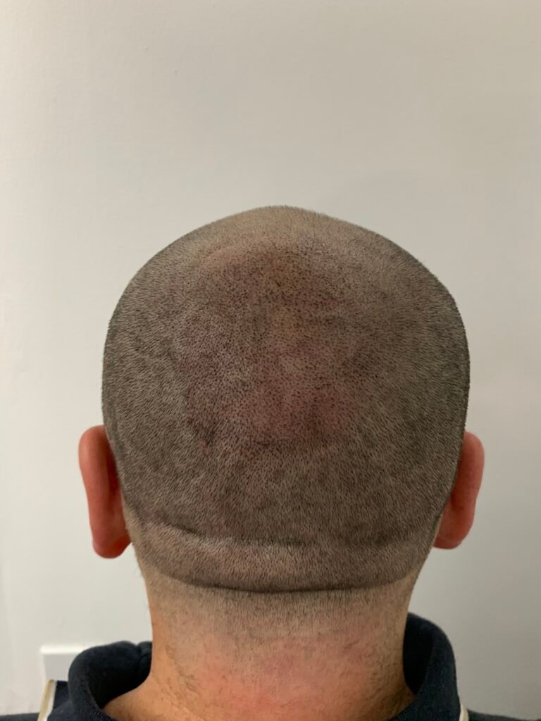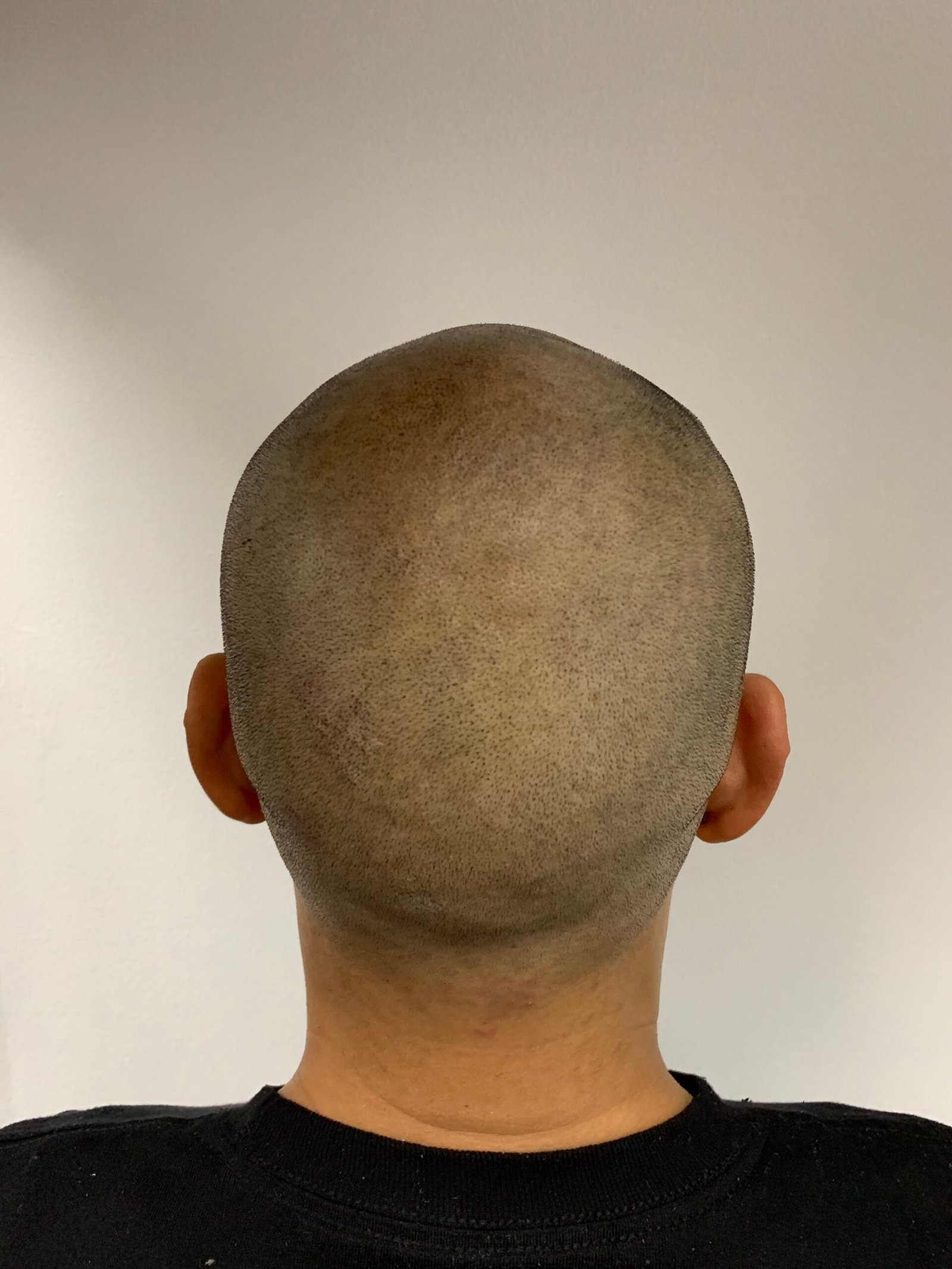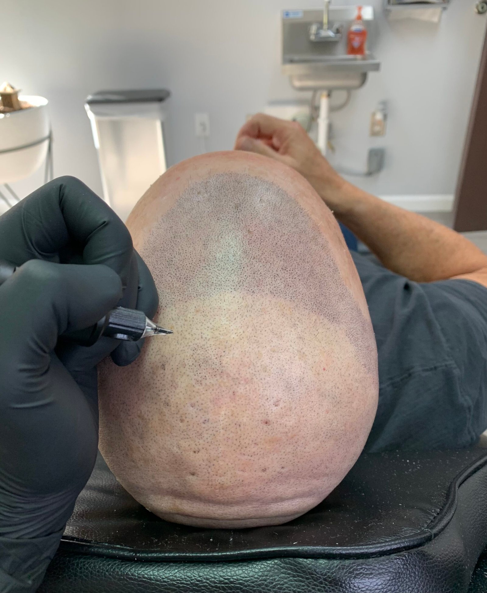 Non-surgical scalp micropigmentation for a fuller-looking head, natural hairline, and scar concealment.